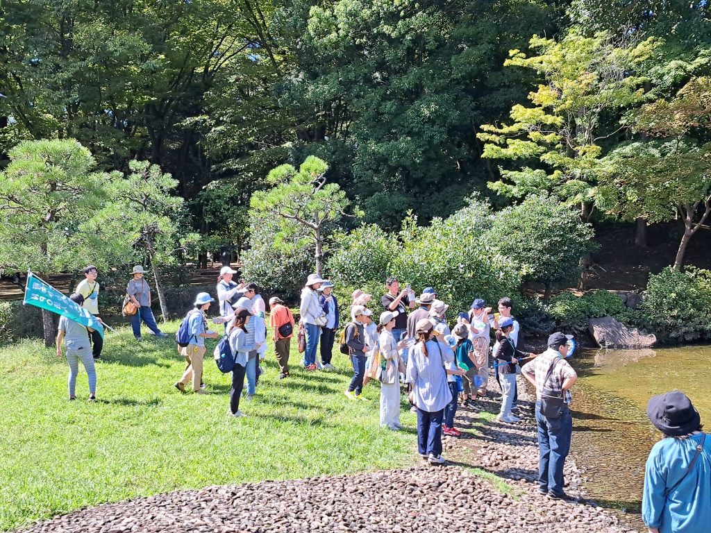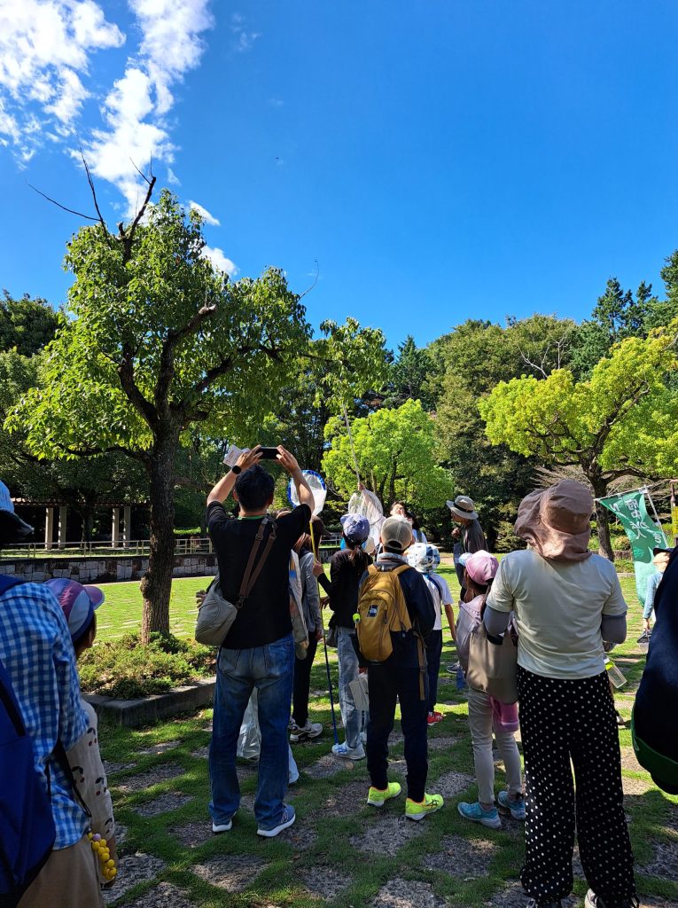 当日はさわやかな晴天に恵まれ、日陰で風を感じると、つい”うとうと”と目を閉じてしまいたくなるような陽気でありました。園内サービスセンター前に集合し、噴水付近、日本庭園、武蔵野の森、大きな広場の順で巡り、フィールドによって生息する昆虫が異なることを感じつつ、参加されたお子様は「これはなんて虫なの?オスなの?メスなの?」などと、講師を質問責めにするほどに楽しんでおられました。