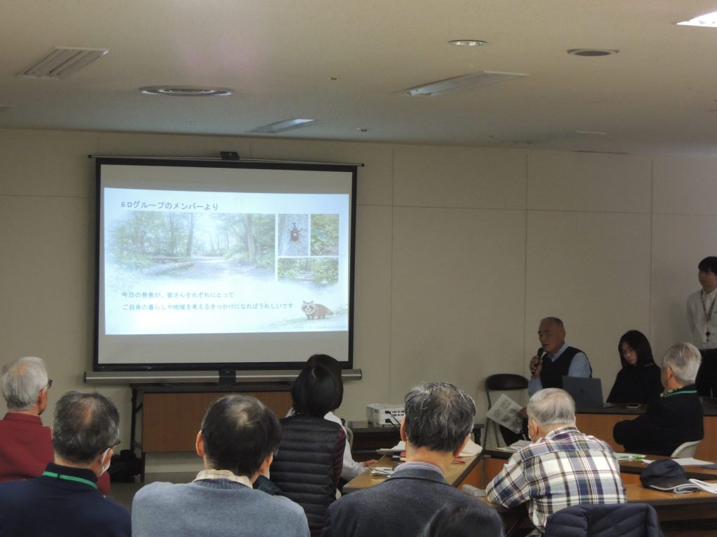 発表後には、受講生がグループに分かれて交流会を実施しました。心に残った講座や、さらに学んでみたいテーマなどについて意見交換を行い、活発な話し合いが行われました。環境保全活動や市民活動への関心が高まり、今後の活動につながる前向きな意見やアイデアが多く出されました。