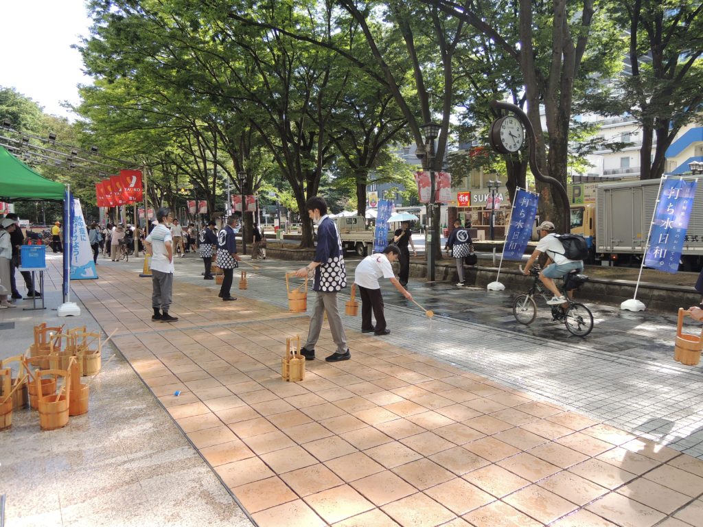 7月25日(金)フォーリス前けやき広場で「江戸の知恵 打ち水日和」を開催しました。